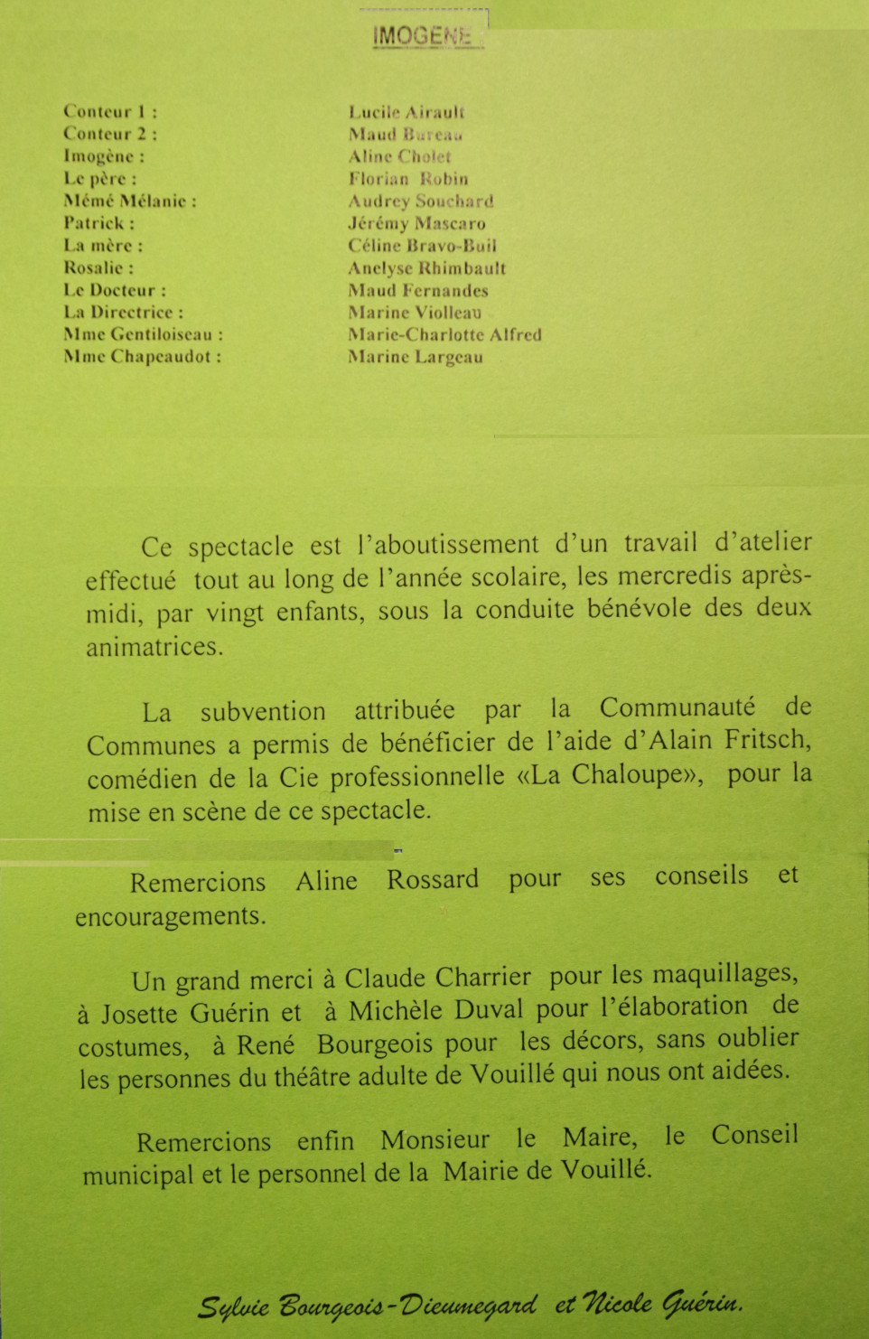 Cette année-là, c'est Alain Fritch, cofondateur de La Chaloupe (avec Joel Picard), qui se joint à nous pour faire la mise en scène.