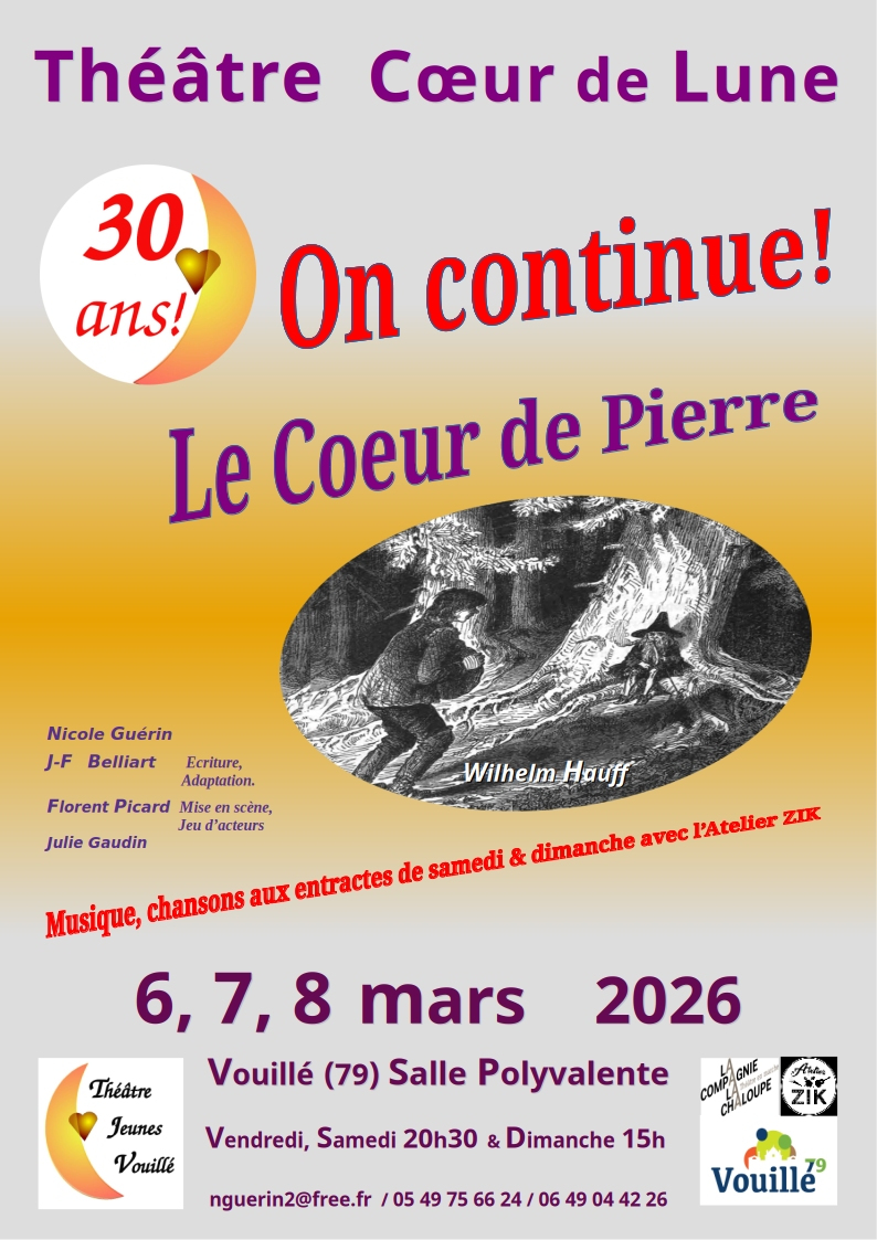Avec "Le coeur de Pierre", nous présentons cette année une nouvelle adaptation, assez largement réécrite, tout en respectant l'essence de ce récit : un conte, vieux de 2 siècles, mais aux accents très actuels, en ce triste monde.