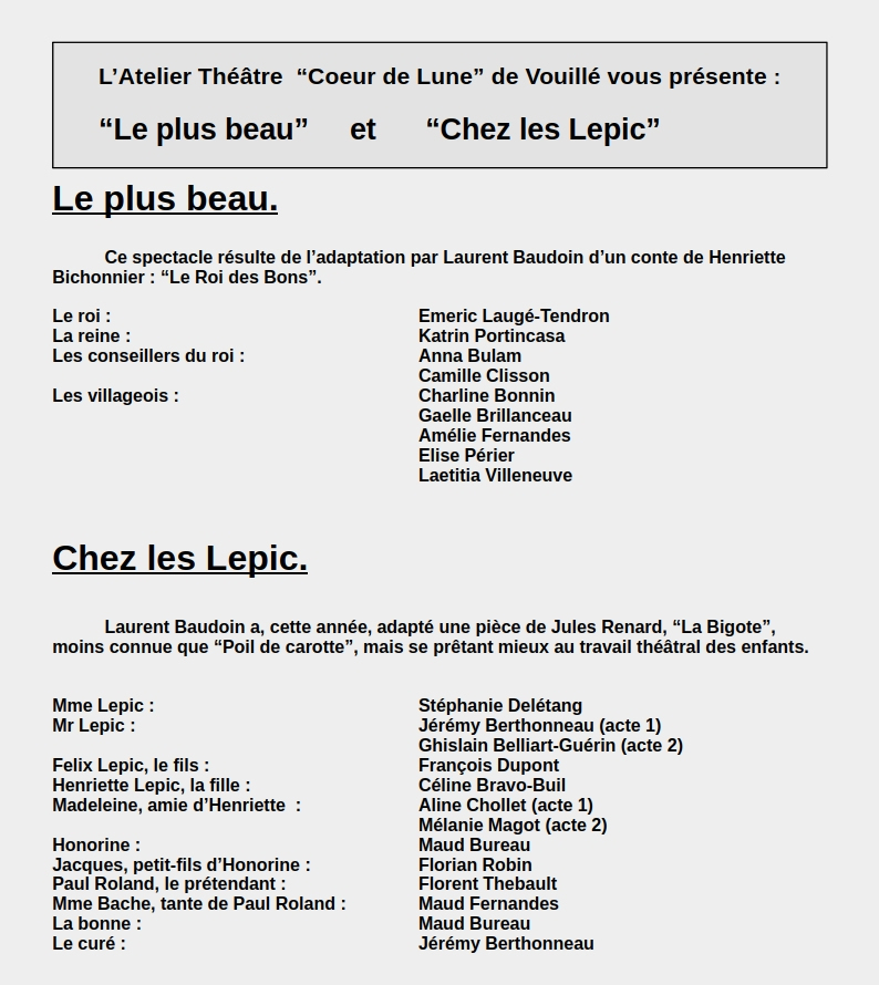 Laurent Baudouin propose adaptation et mise en scène de textes de Jules Renard et Henriette Bichonnier.