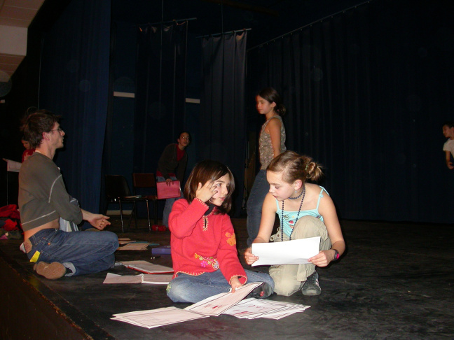Florent Picard, notre jeune metteur en scène, avec une partie de l'équipe des jeunes comédien.nes.