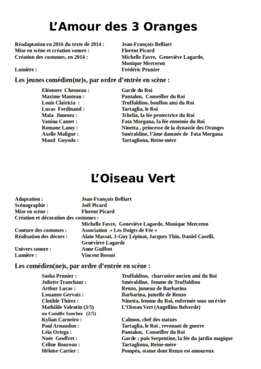 2 comédies féériques de Gozzi,