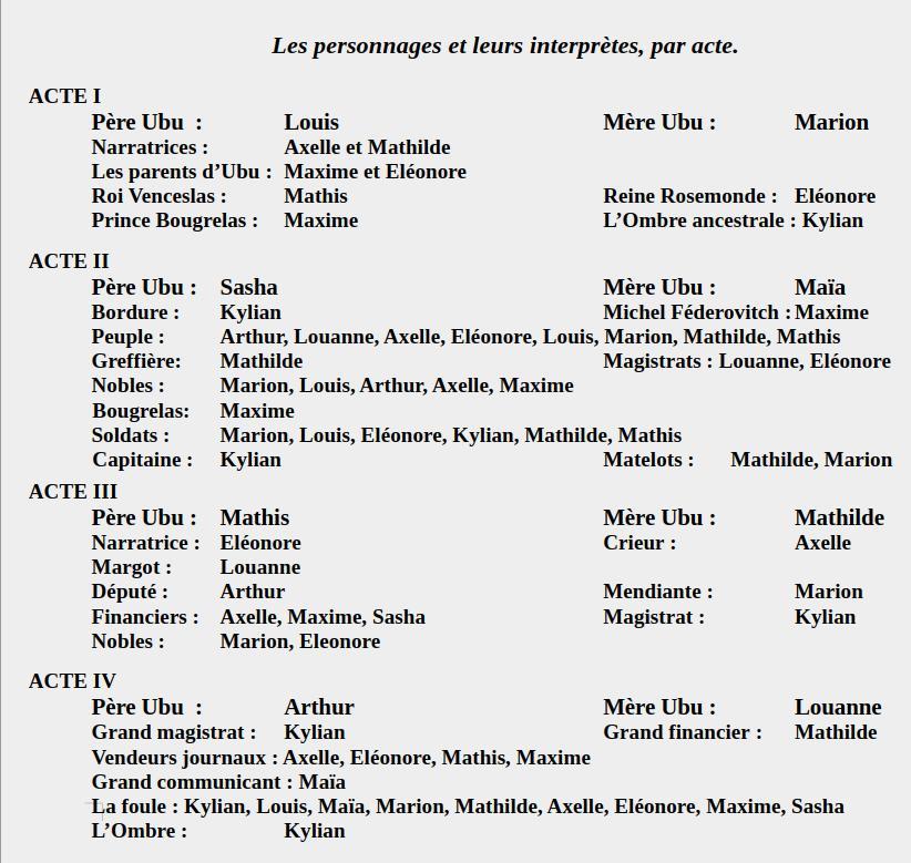 Une pièce en quatre actes écrite à partir de l'oeuvre d'Alfred Jarry.